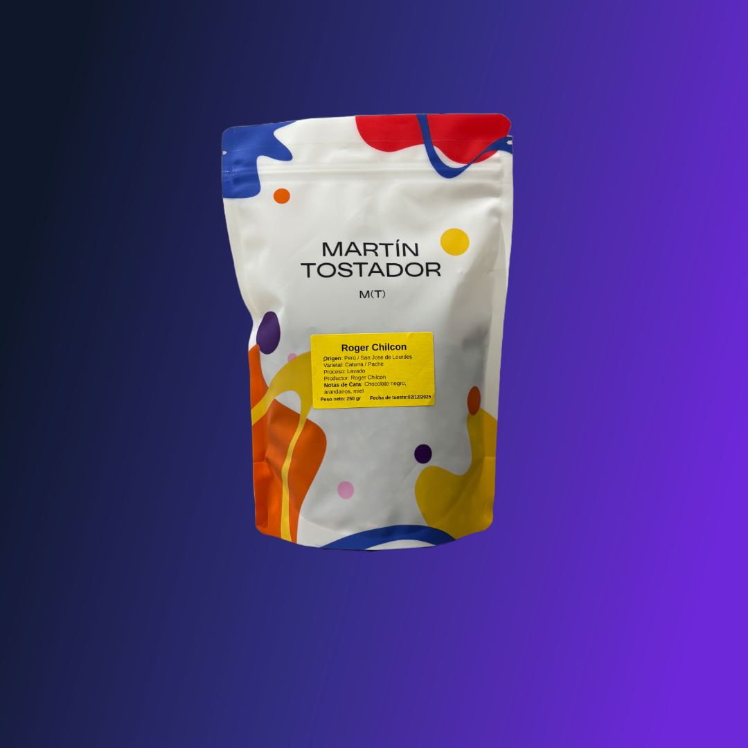 Roger Chilcon Flores es propietario de 3 hectáreas de café en la aldea El Diamante, en el distrito de San José de Lourdes. Roger cultiva caturra amarilla y roja, y toda la tierra se encuentra a más de 1900 msnm. Algunos miembros de la familia de Roger también cultivan café en la zona y la familia gestiona las fincas conjuntamente. Si bien cada miembro de la familia posee su propia tierra, Roger se encarga de la recolección, el procesamiento y el secado del café. Las cerezas se recolectan lo más maduras posible antes de ser pre-fermentadas durante la noche en bolsas. Estas cerezas maceradas se despulpan y se fermentan de 24 a 36 horas, dependiendo de las condiciones climáticas. Esta fermentación prolongada y la maceración de las cerezas le dan a la taza una marcada nota afrutada que complementa la marcada acidez cítrica propia de la gran altitud. Roger seca todo su café dentro de un invernadero ventilado en un patio de madera revestido de plástico. Una vez que el café tiene un contenido de humedad inferior al 11%, Roger lo lleva a Jaén, donde lo entrega al almacén de Falcon Coffees Perú.